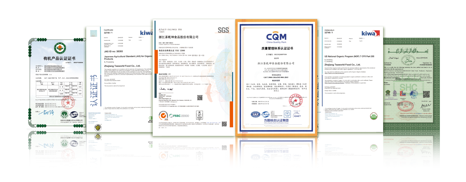 Certified as the No.1 supplier of sugar-free floral tea raw materials in China, and the No.1 supplier of tea bags exported to Japan for 5 consecutive years.