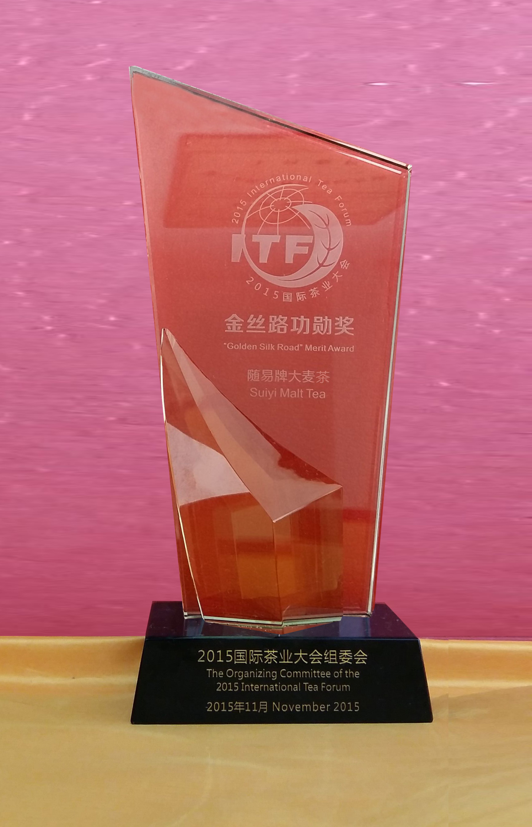 热烈祝贺公司“随易”牌大麦茶荣获2015国际茶叶大会“金丝路功勋奖”