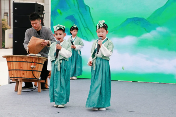 2025年杭州全民饮茶日活动现场,精彩纷呈的文艺汇演为活动增添了浓厚的文化氛围。在龙坞茶镇的会场上,《只此青绿》舞蹈表演率先登场,演员们以灵动的舞姿生动展现了杭州茶乡的独特魅力。来自西子湖幼儿园的孩子们用稚嫩而真挚的声音朗诵了《茶香伴宋韵》,通过童声童语让在场嘉宾领略到了茶诗的韵味。随后,女高音歌唱家、浙江艺术职业学院青年艺术团陈芬芳老师演唱了《龙井茶香》,悠扬的旋律让人身临其境,仿佛感受西湖龙井茶香飘荡的美好画面。演出将传统茶文化与现代表演艺术完美融合,既展现了杭州作为“中国茶都”的文化底蕴,又彰显了茶文化在新时代的创新发展活力。