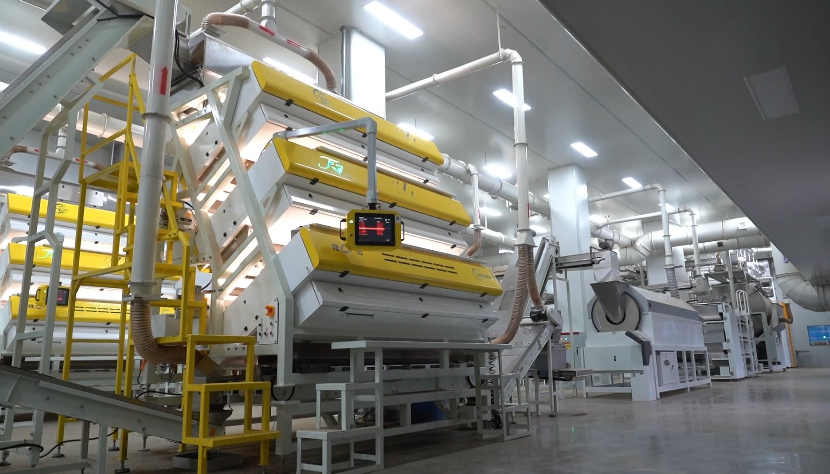 在茶叶加工筛选环节,以往需要六七个人从细小的茶叶中不停挑选出杂质,耗时耗力,现在仅通过1台色选机,就能实现AI识别自动分类。公司总经办主任刘金娥介绍:“这台色选机被植入了智能软件,会自动将原料中的茶梗、老片及其他非茶类异物全部精准筛选出来。”
