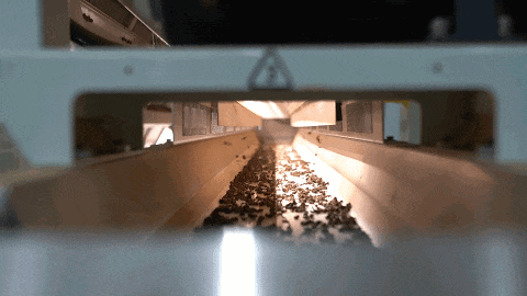 尤其是筛选环节,以往需要六七个人从细小的茶叶中不停挑选出杂质,耗时耗力,现在仅通过1台色选机,就能实现AI识别自动分类。公司总经办主任刘金娥介绍:“这台色选机被植入了智能软件,会自动将原料中的茶梗、老片及其他非茶类异物全部精准筛选出来。”